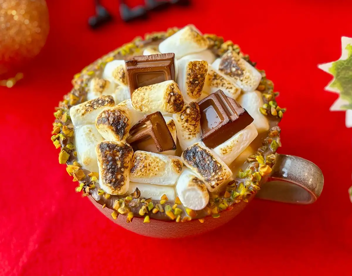 表面をバーナーでこんがりと焼き上げたマシュマロがたっぷりのった、ちょっと背徳感のある一杯です。