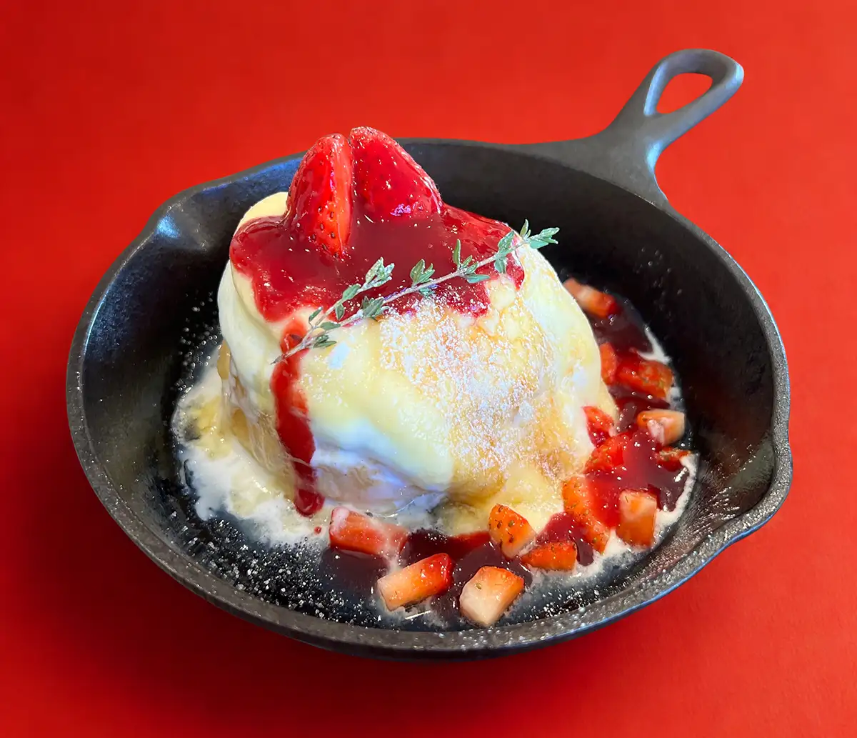 自家製のいちごソースとホワイトチョコクリームの相性は抜群で、思わず笑顔になるおいしさ。