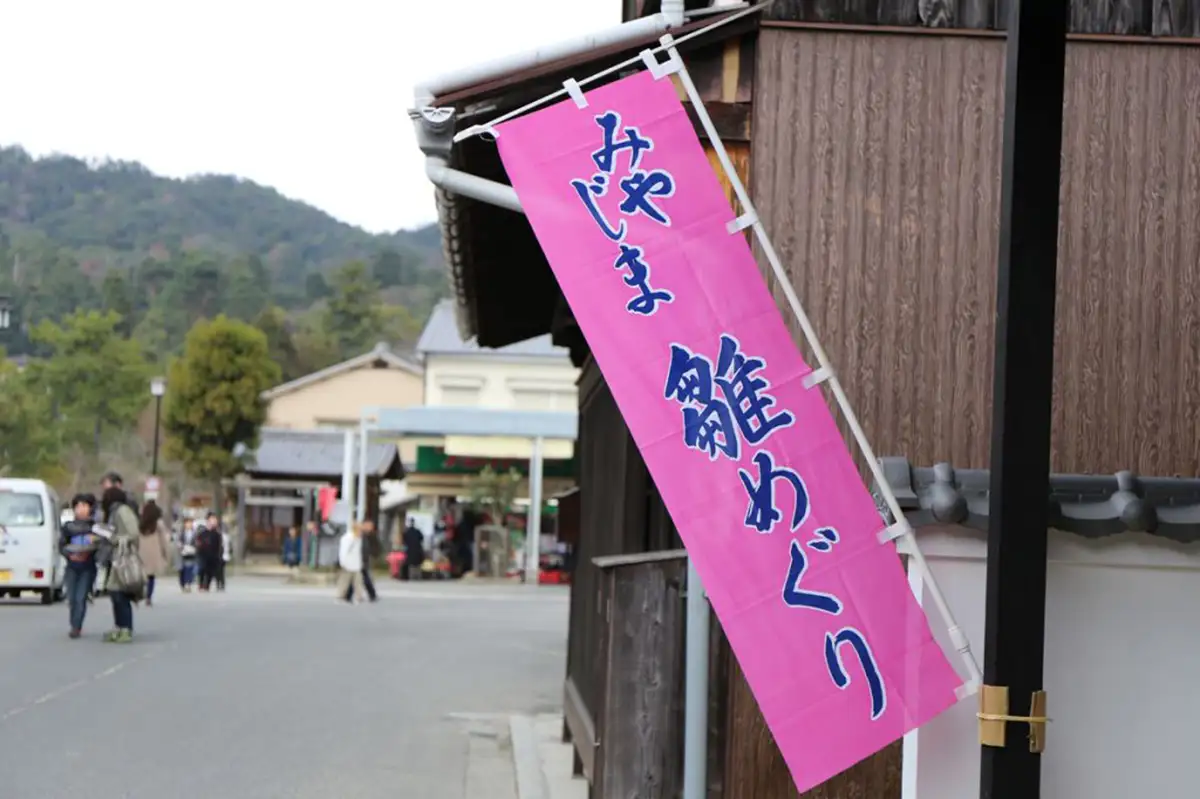 - 大聖院・宮島島内の商店など(ピンクののぼり旗が目印)