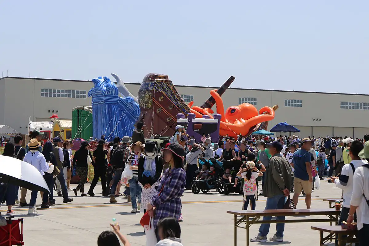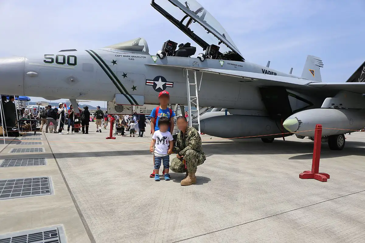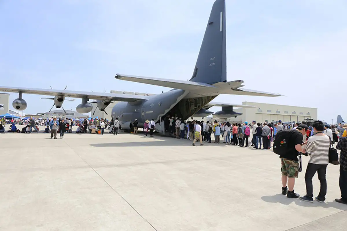 一般開放された基地内では、海上自衛隊・航空自衛隊・陸上自衛隊に、米海兵隊・米海軍・米空軍がさまざまな種類の軍用機や装備を展示。間近で見学したり記念撮影ができます。