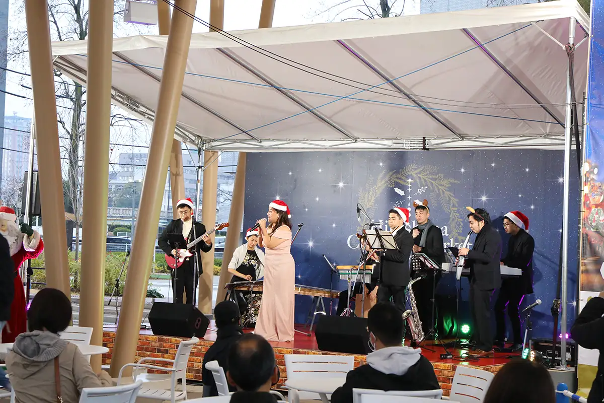 クリスマスソングや子どもたちのダンスなど、華やかなステージがマーケットの雰囲気を盛り上げます!