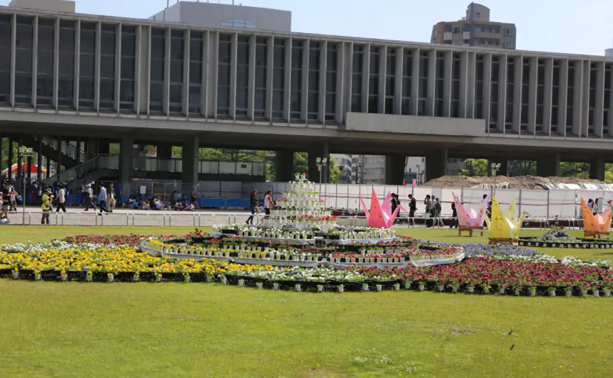 広島市内とその近郊の学校や施設などで育てられた約4万鉢の花を平和記念公園に集めて展示。