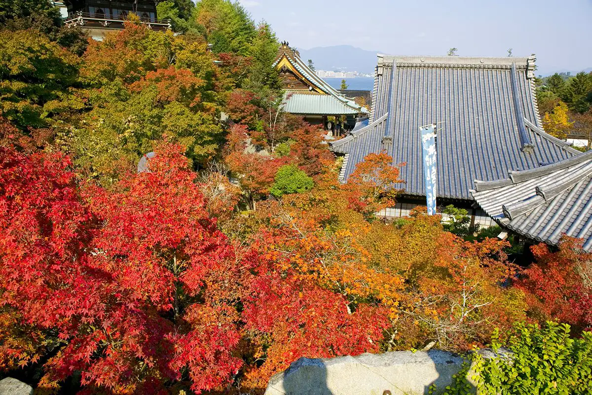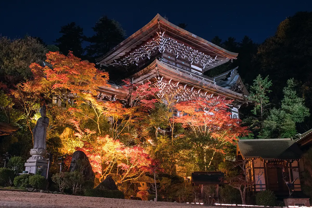 宮島の観光スポット・大聖院の境内で紅葉のライトアップを実施。