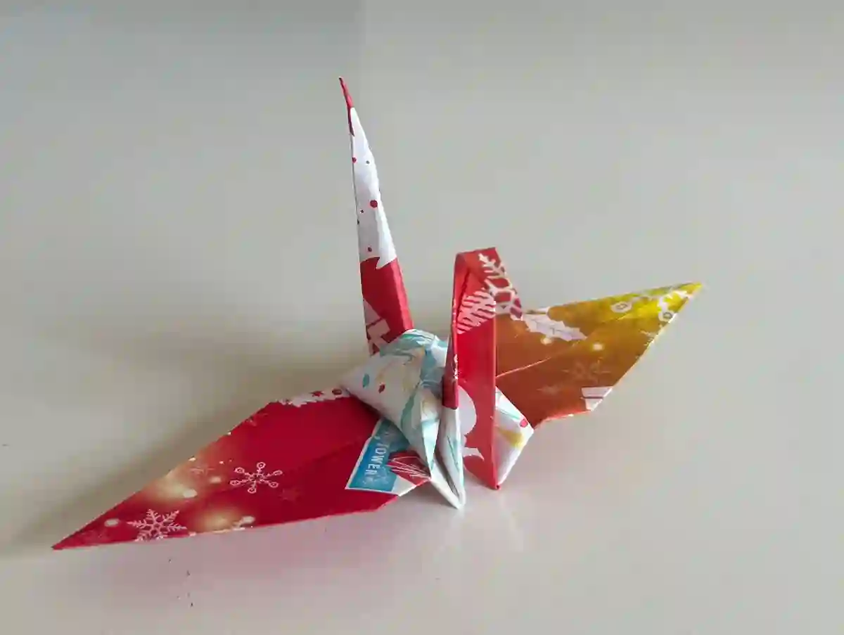 完成した折り紙で折り鶴を折り、「おりづるの壁」への投入体験も可能(投入体験は100円)。