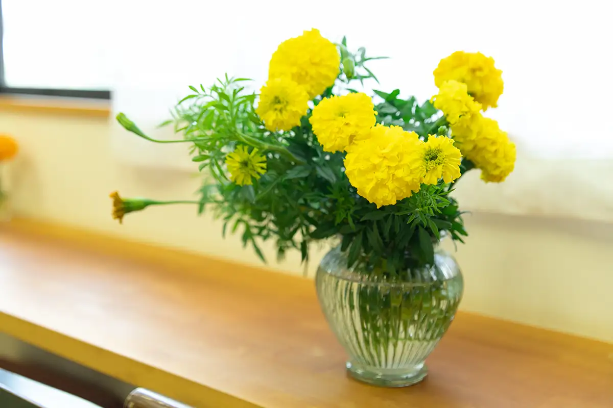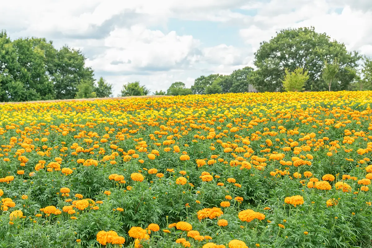 部屋に飾るとぱっと明るくなる夏の花。はじけるビタミンカラーのマリーゴールドを自分で摘み取れます。