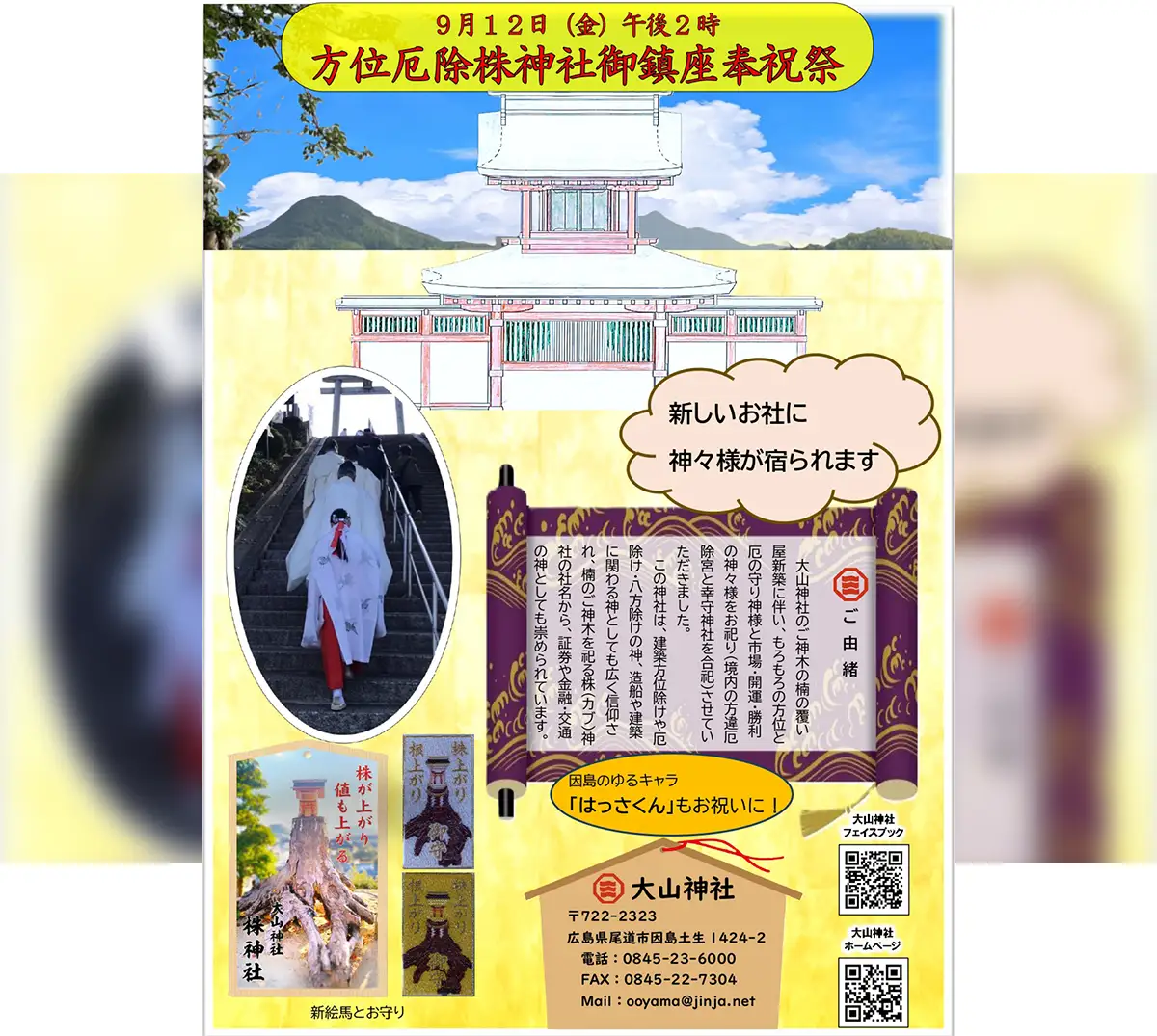 「方違厄除宮」とご神木の楠を融合した二層式の新社殿が竣工。装いも新たに御鎮座することを記念した祝祭を開催。
