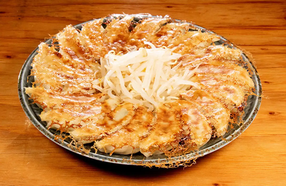 昭和26年創業、味噌だれ餃子発祥の老舗専門店。いつも行列が絶えない名物餃子は、国産キャベツと豚肉を使用し、野菜本来の甘みとオイスターソース、味噌の旨味が絶妙に調和しています。深いコクとクセになる味わい。