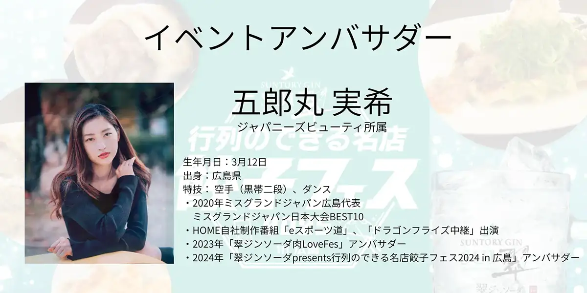 ・2024年「翠ジンソーダpresents行列のできる名店餃子フェス2024 in 広島」アンバサダー