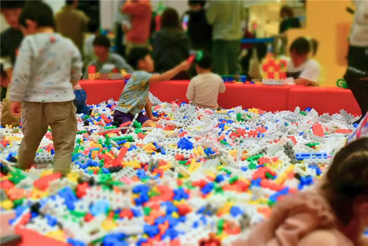 知育おもちゃ・ニューブロックの60周年記念のイベントとして開催。2万個のブロックで無料で遊べる!