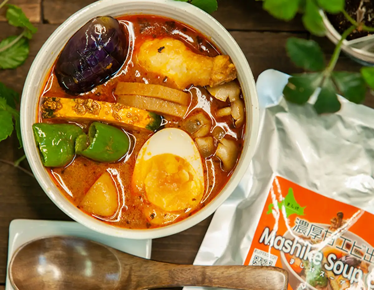 北海道十勝の風味をそのまま楽しめる、コク深く旨みあふれるスープカレー。