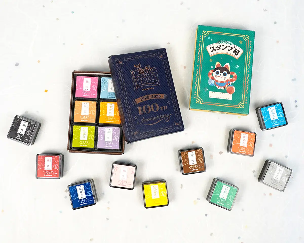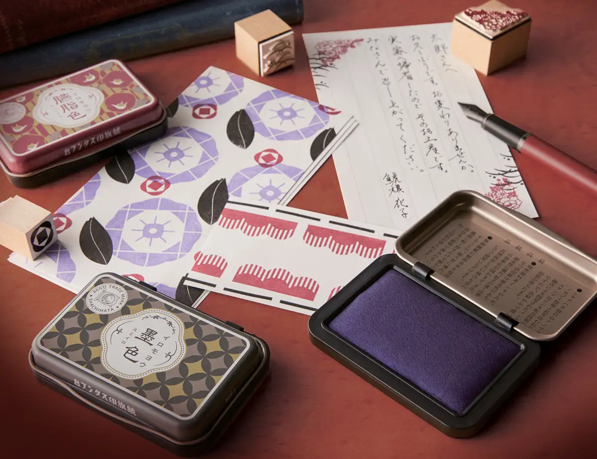 「もし1925年の創業当時に『いろもよう』が存在していたら」という想いをコンセプトに、大正末期を思わせる懐かしいデザインと、改良を重ねた現代の高いなつ印性能を両立させた、創業100周年記念のスタンプ台。インキは墨色(すみいろ)、臙脂色(えんじいろ)、藤紫色(ふじむらさきいろ)の全3色を用意しています。