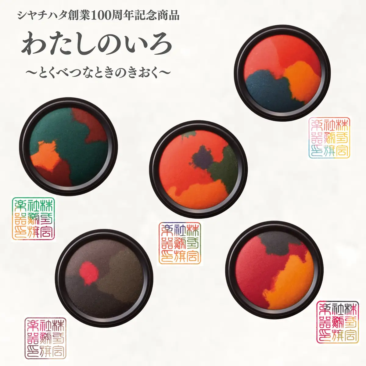 シヤチハタ創業100周年を記念して、複数の色が織り交ぜられた鮮やかな朱肉「わたしのいろ」の新シリーズ第四弾「わたしのいろ-とくべつなときのきおく-」を発売。誕生日やクリスマス、バレンタインなどの「特別な時間」をテーマにした全5種類のラインアップです。