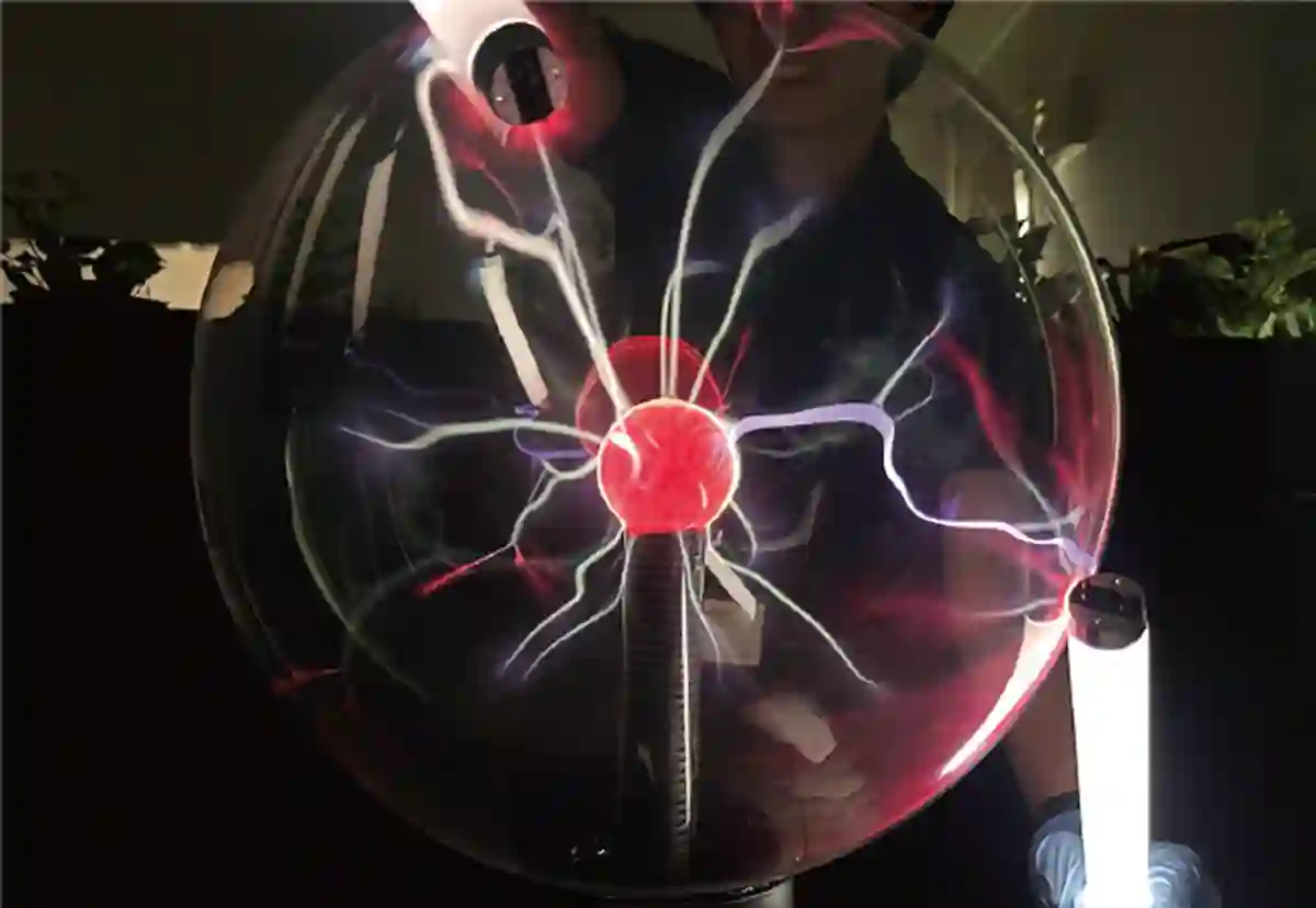直径およそ60cmの大型ボールに手を触れると、プラズマが手に集まります。さらに蛍光灯を近づけると、幻想的な光を放ちます。まるでオーロラのようなプラズマ体験を楽しんでみましょう!