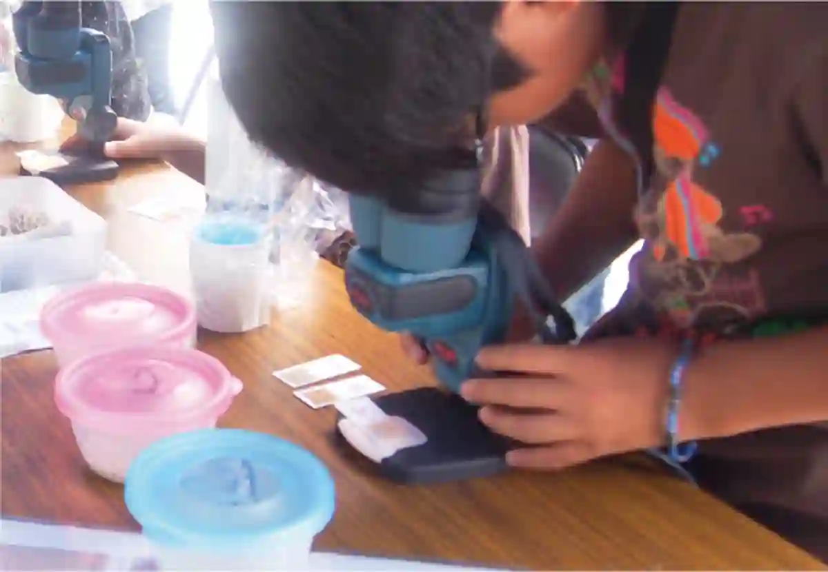 顕微鏡を使って、瀬戸内海・沖縄・アラビア半島の砂を観察し、どの地域の砂かを見分けるゲームに挑戦してみよう!