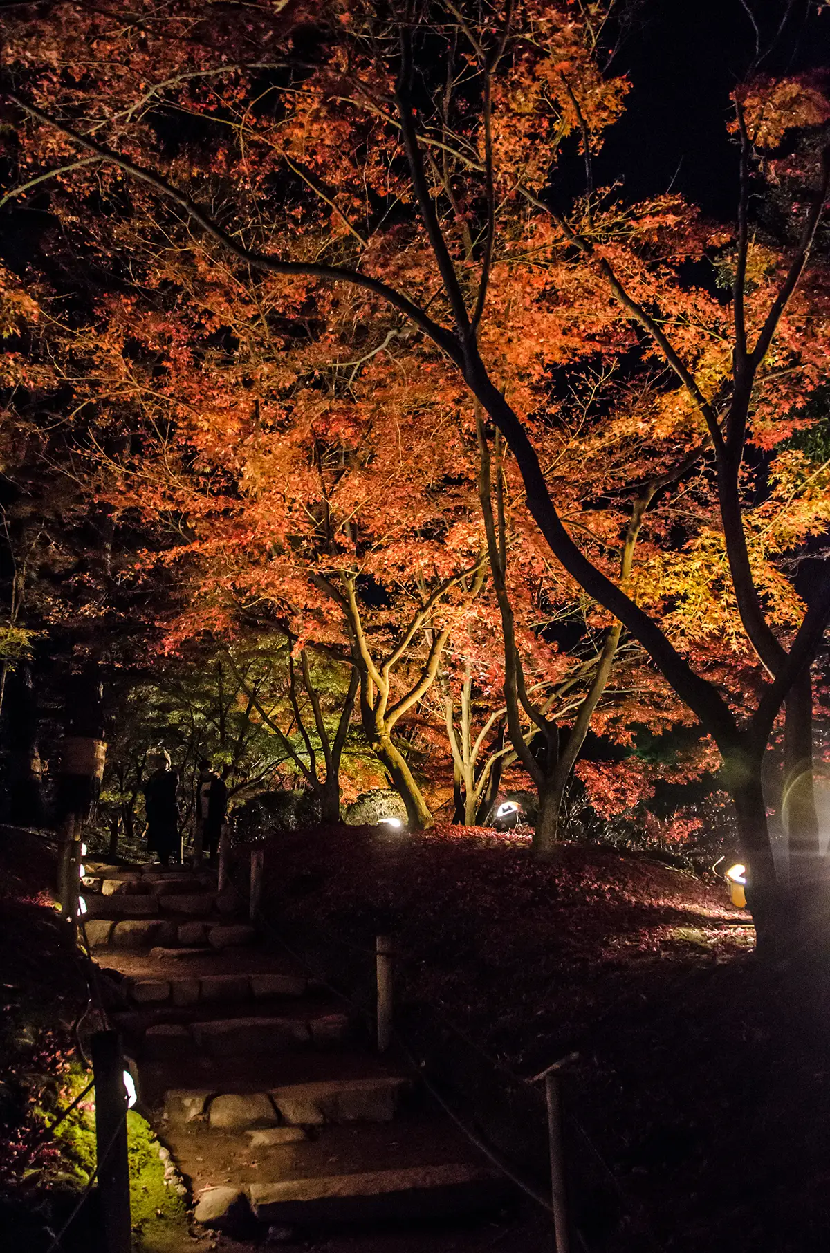 開園時間を延長して、園内の紅葉や見どころスポットをライトアップ。庭園が幻想的な空間に。