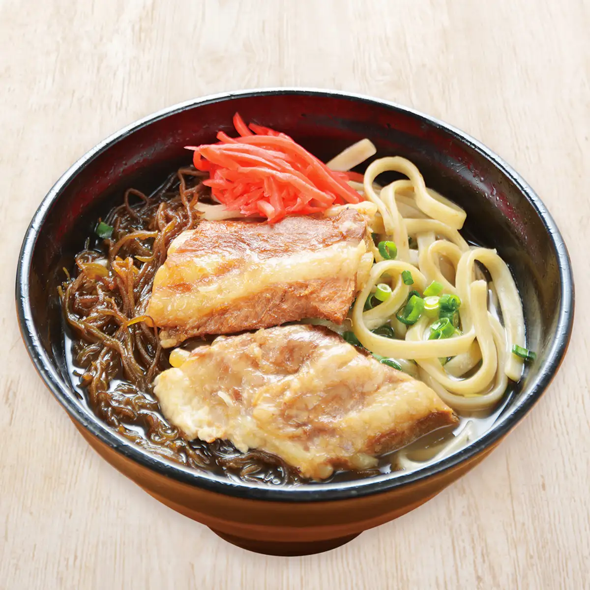 自家製のもずく入り生麺には、軟骨ソーキが驚くほどよく合います。