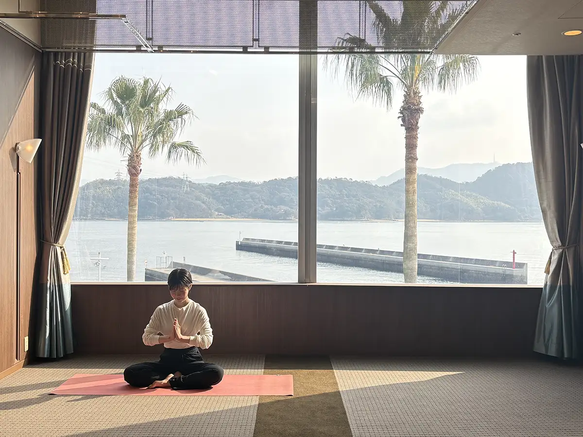瀬戸内海の景色を眺めながら、天然温泉とヨガイベントで心身のコンディションを整えるウェルビーイング(心身共に満たされた状態)な体験を提供。