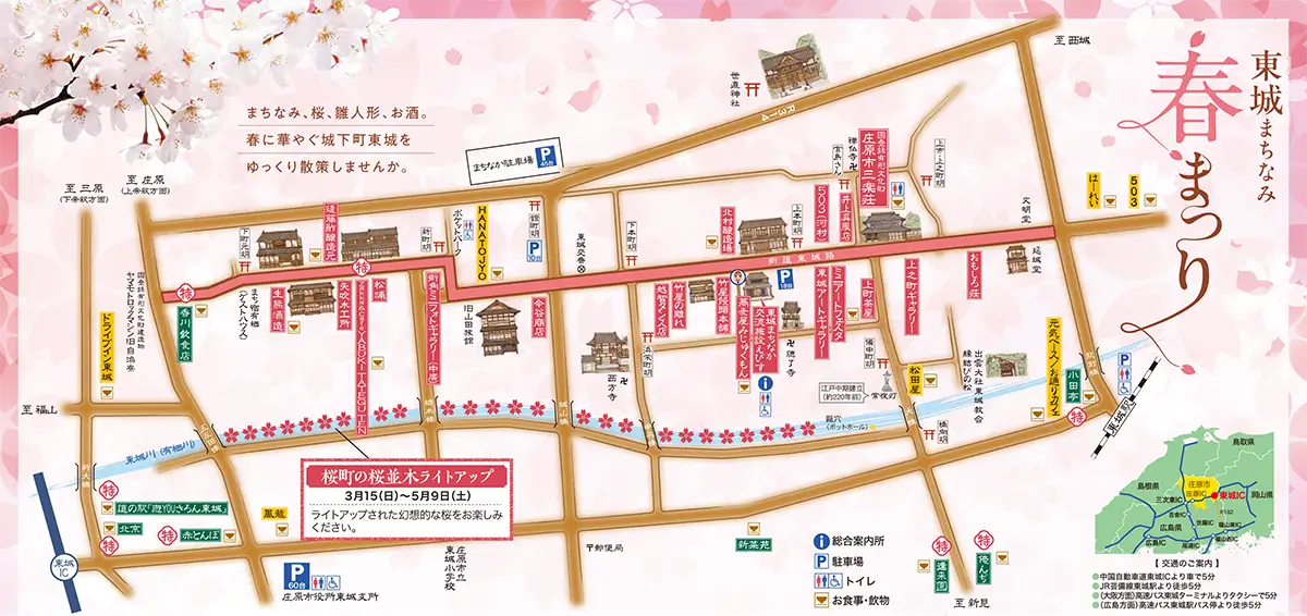 東城の歴史ある街道と桜並木を散策しながら、グルメやお酒、ギャラリーイベントなどが楽しめる3日間!