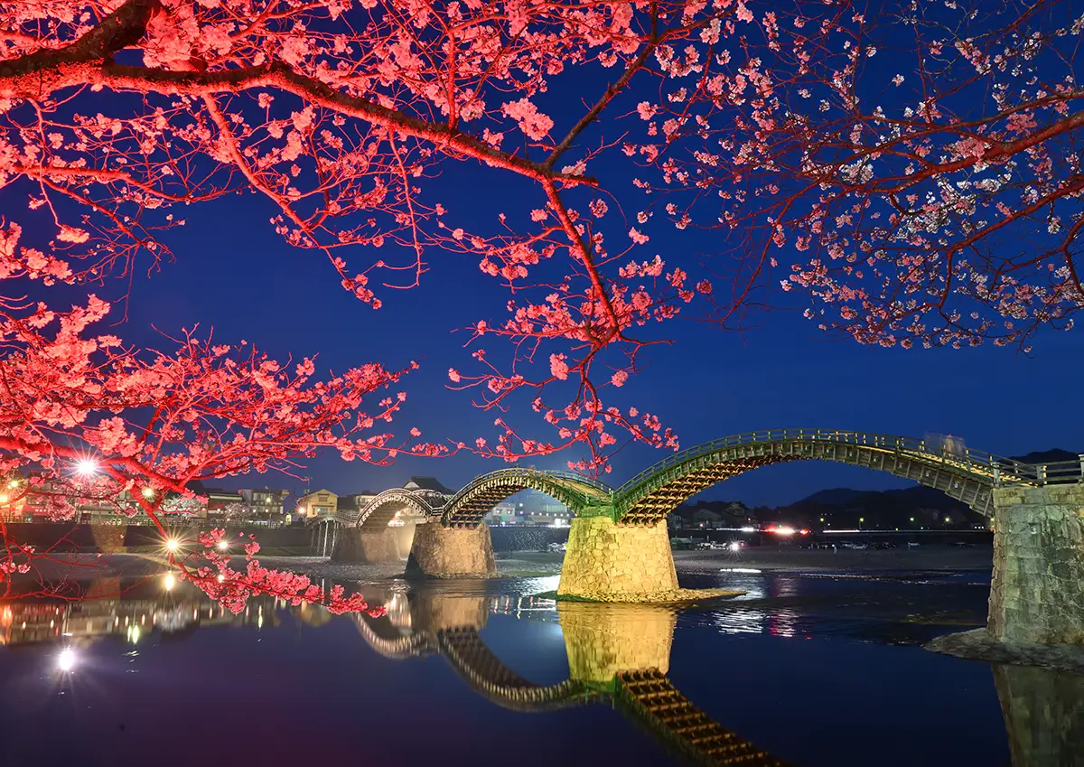 錦帯橋の桜ライトアップ2026