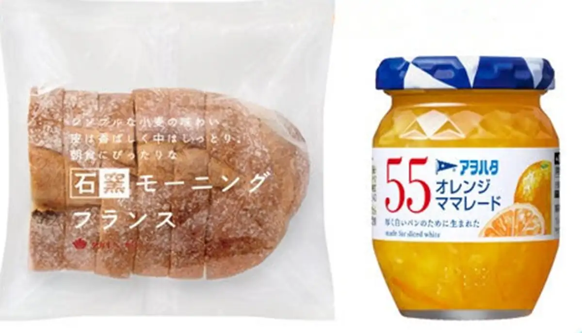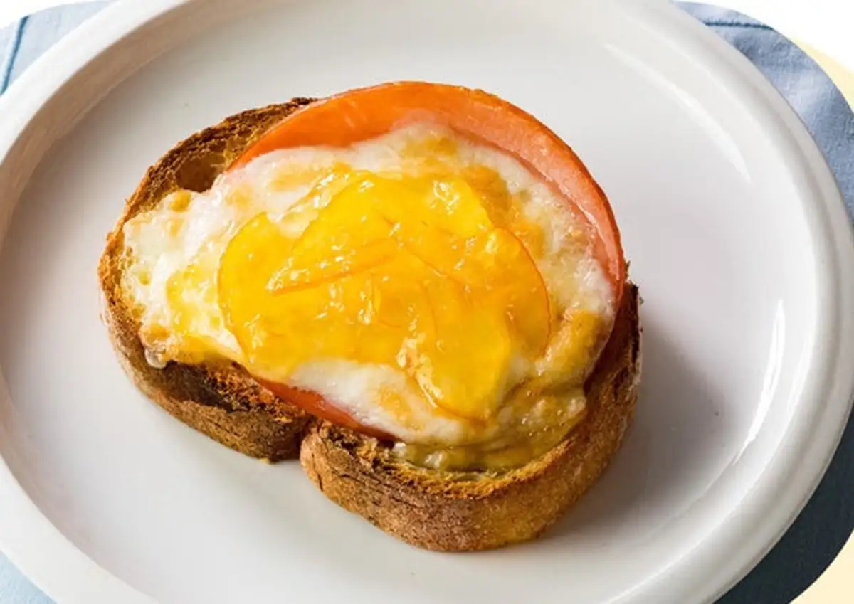 「石窯モーニングフランス」にハム とチーズ、オレンジママレードをのせた甘じょっぱい味わいが楽しめます。