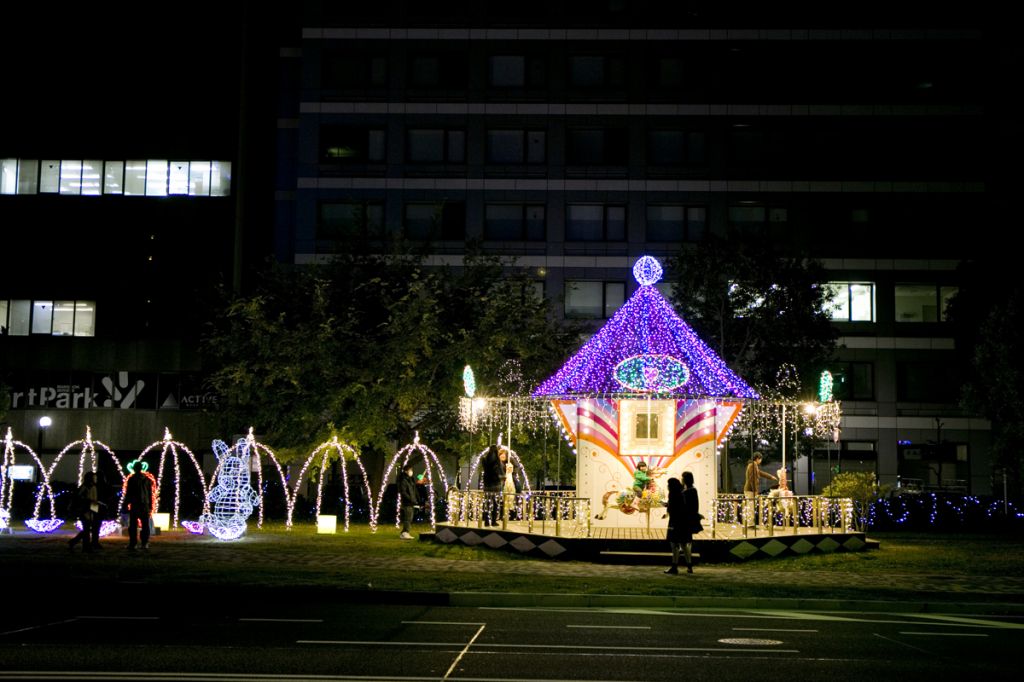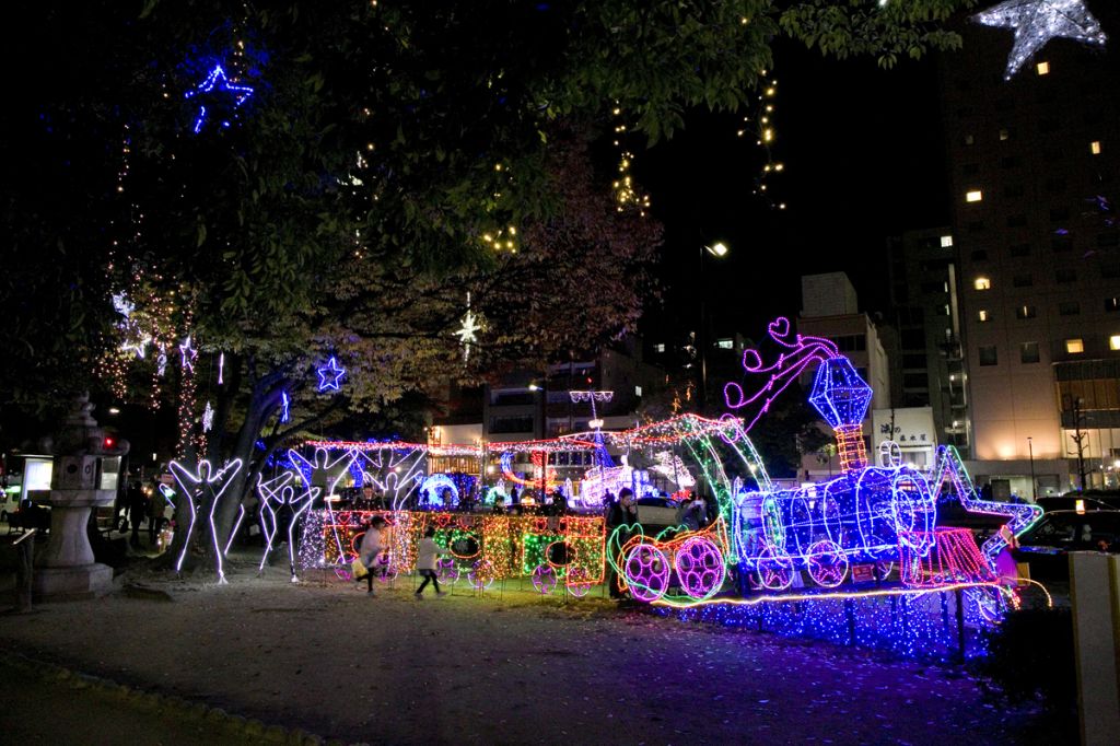 「おとぎの国」をコンセプトにして、約140万球の電球が広島の夜を華麗に彩ります。メイン会場となる平和大通りでは、南北に広がる緑地帯の総延長2キロにわたってさまざまなオブジェが登場し、見応えは抜群です。