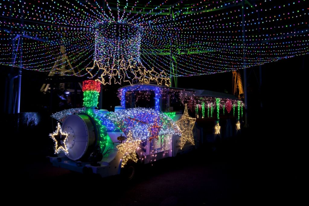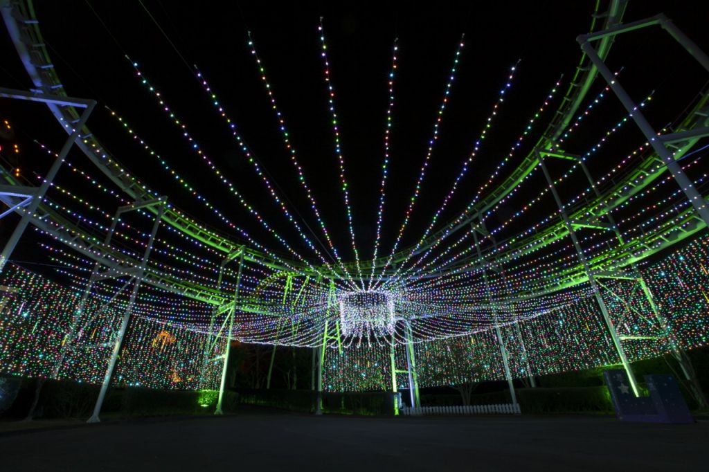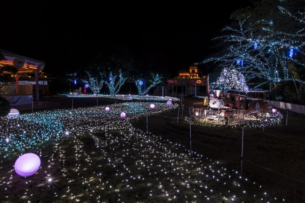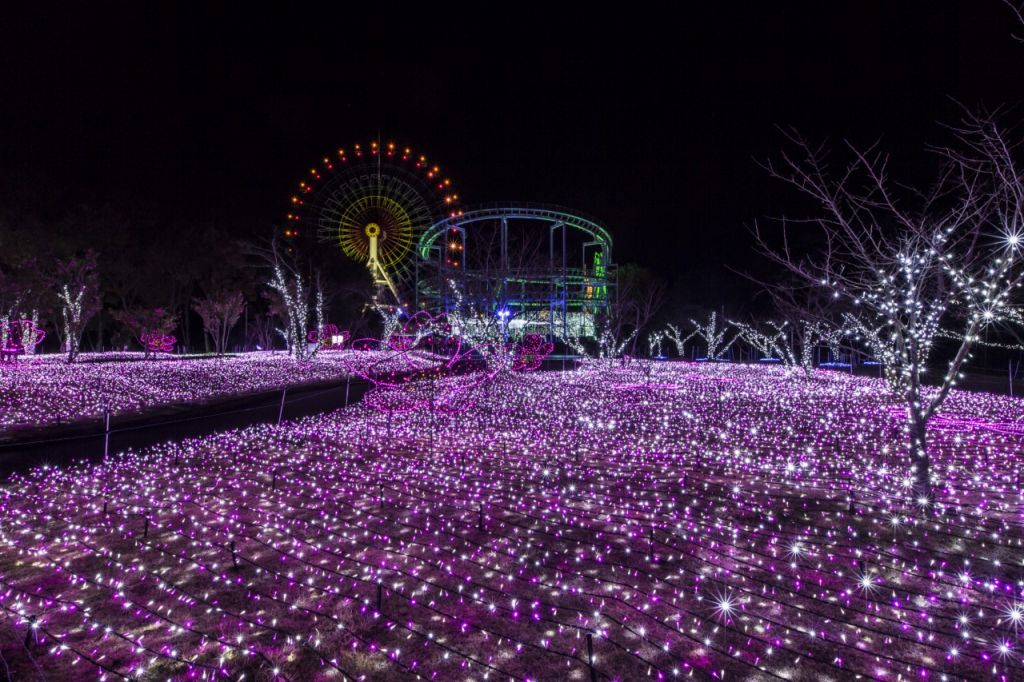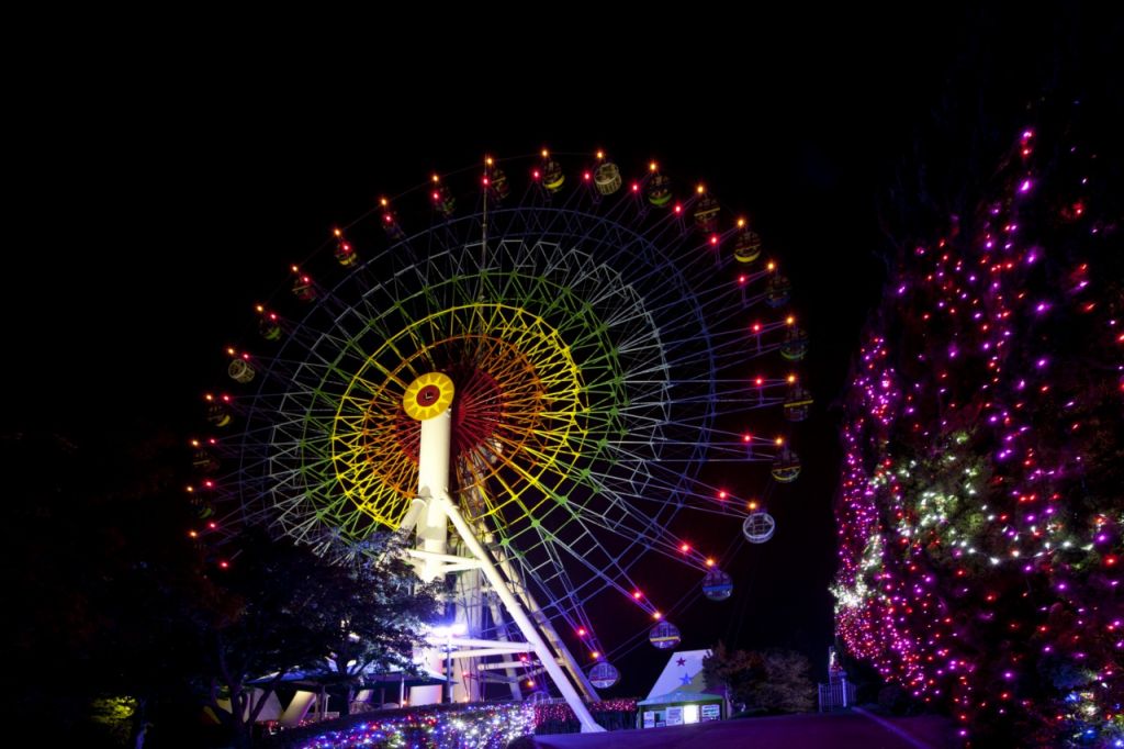 園内のアトラクションも光に彩られ、乗って体感できるイルミネーションは遊園地ならでは。