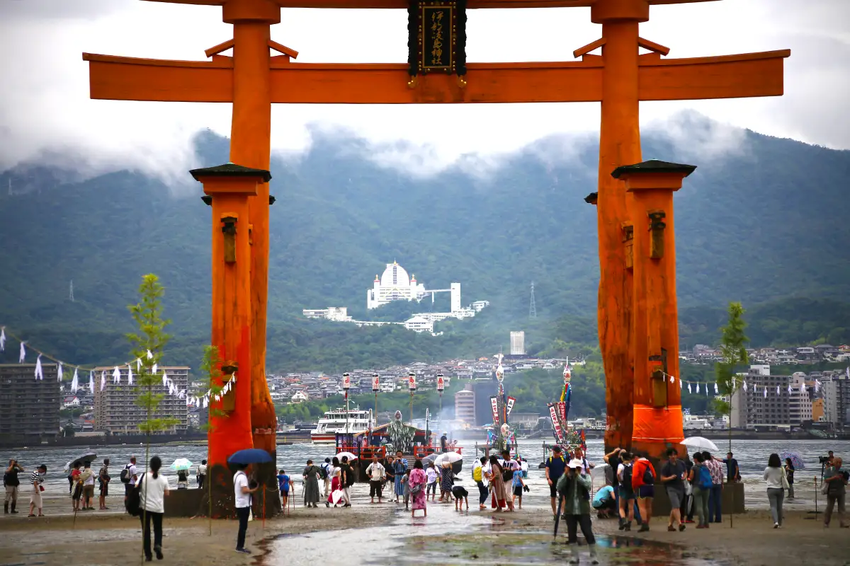嚴島神社周辺の海を舞台にして繰り広げられる管絃船の勇壮さは、平安絵巻を思わせる優雅でダイナミックな祭りです。