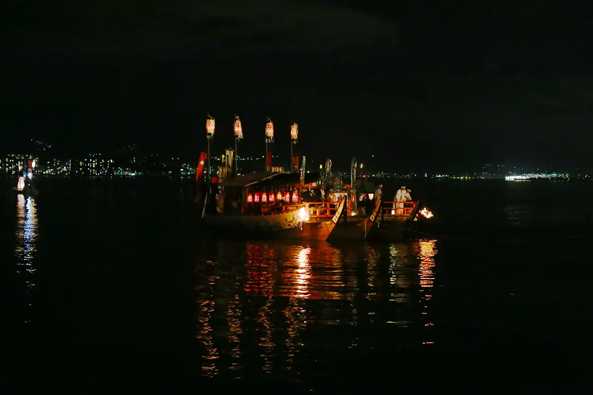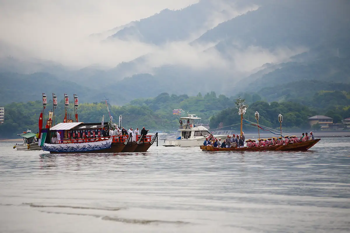 ガイド付きの伴走船に乗船して、管絃祭の御座船を海上から見学できる特別プランを実施。(完全予約制)