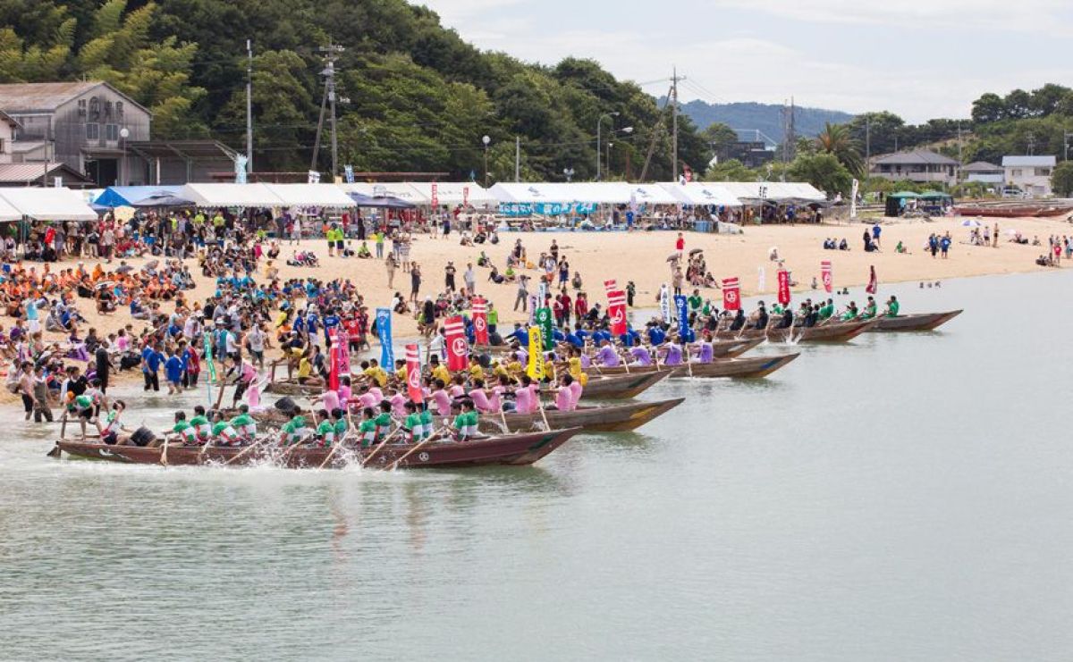 海祭りでは、村上水軍最速の伝令船・小早のレースを開催。