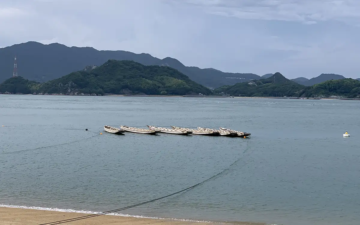 しまなみビーチで、因島村上水軍の伝令船・小早の体験乗船ができます。