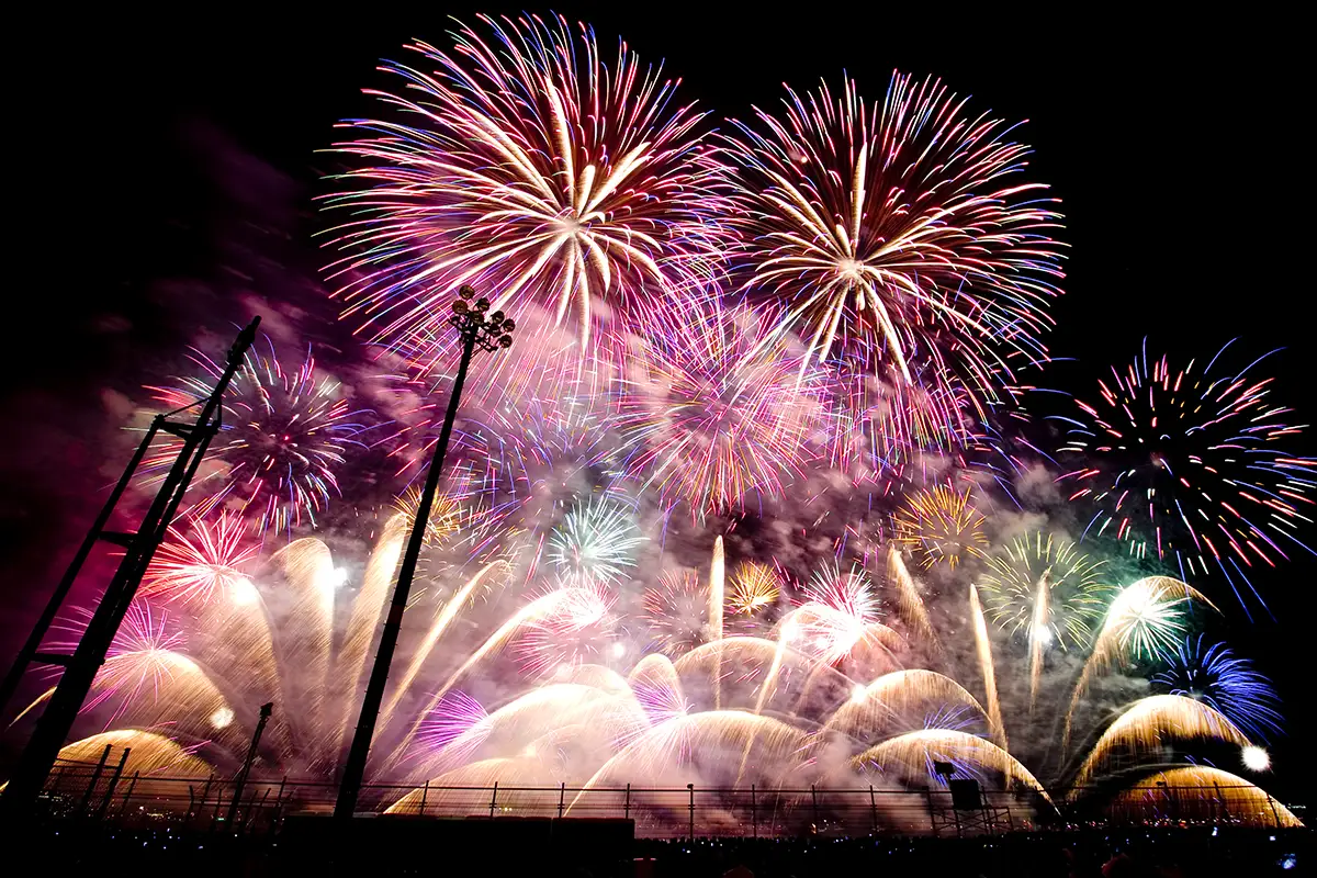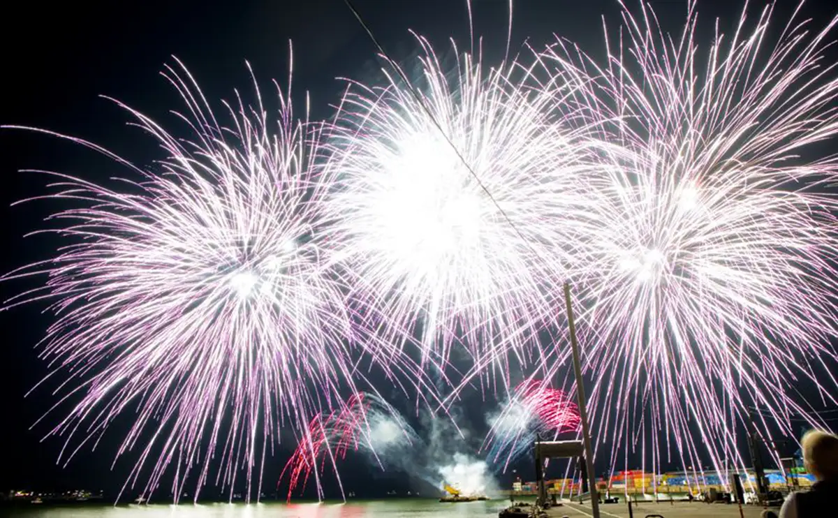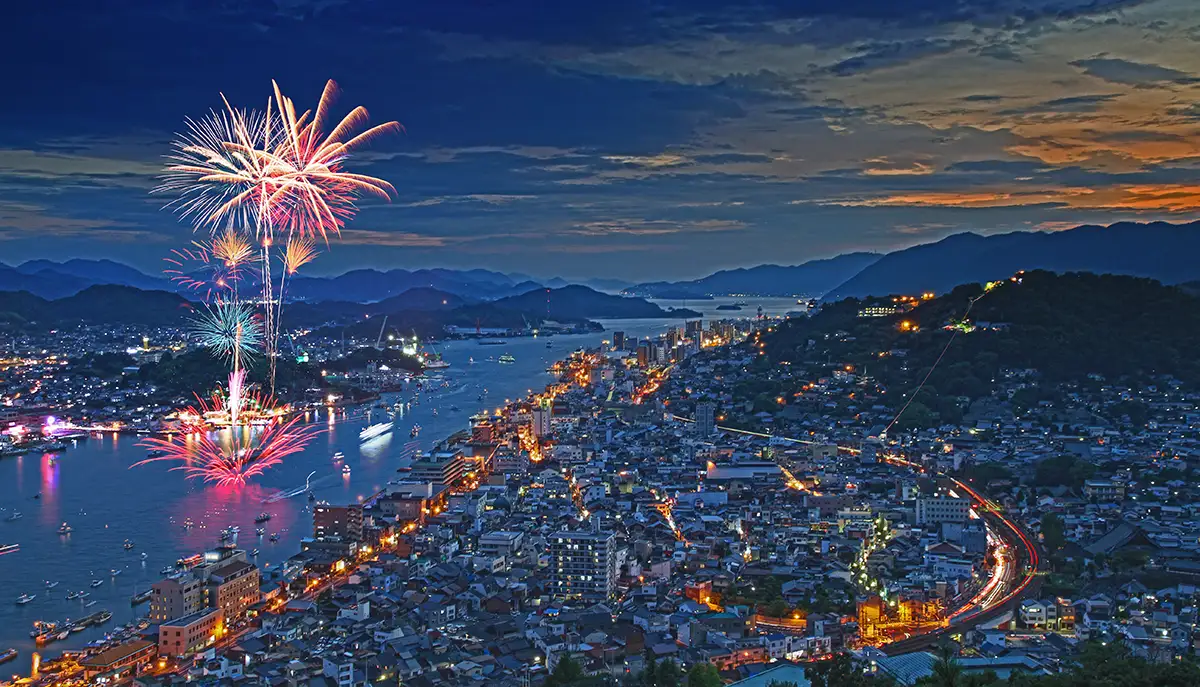 山口県と広島県の県境を流れる小瀬川から打ち上げられる水中花火大会。