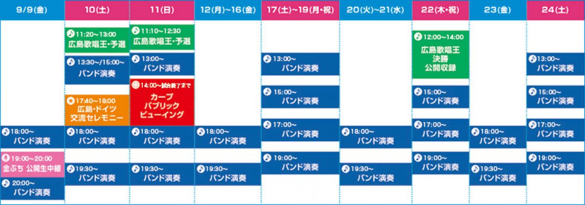 ステージでは、おなじみの「ボーホー&カレンダーバンド」が毎日会場を盛り上げてくれます。