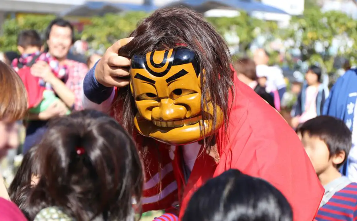 3日には中心街を神輿が練り歩き、ベタ・ショーキー・ソバと呼ばれる面をかぶった獅子たちが子供を追い回し、「ささら」「祝棒」で叩いたり突いたりする奇祭です。これにより1年間無病息災で過ごせると言われています。