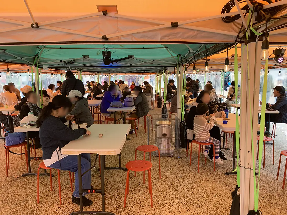 会場中央には約300席のテント席が設けられ、ゆったりと食事が楽しめる環境が整備されています。