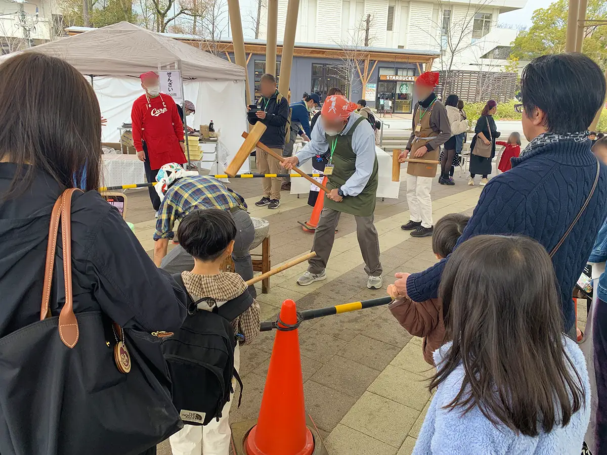 イベントの一角では餅つきがはじまり、子どもたちは「よいしょ、よいしょ」の掛け声とともに応援。普段なかなか触れる機会が少なくなった日本文化を体験し、興味深く見入る子どもたちの姿が印象的でした。