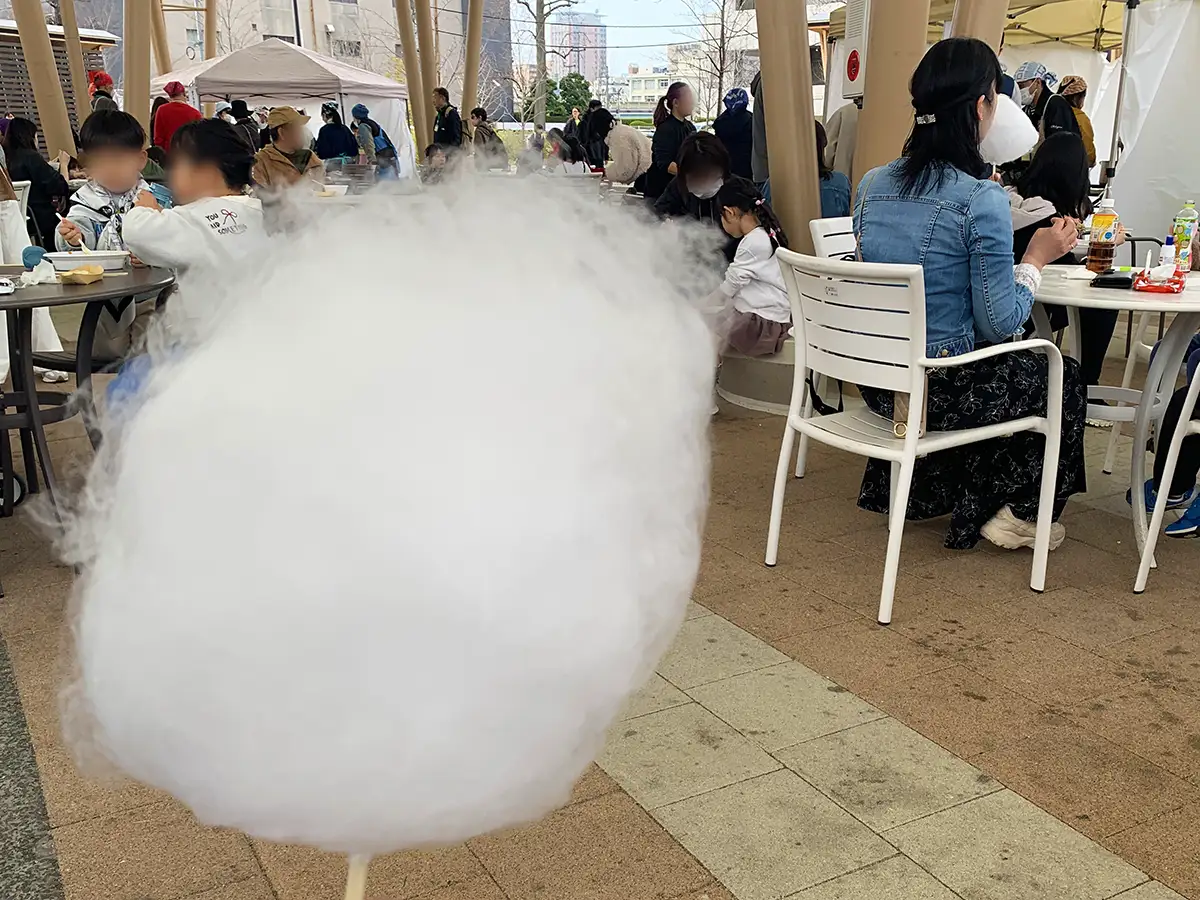 わたがし100円、豚汁やカレーが300円と子どもにも優しい価格設定で提供され、多くの家族連れで賑わいました。