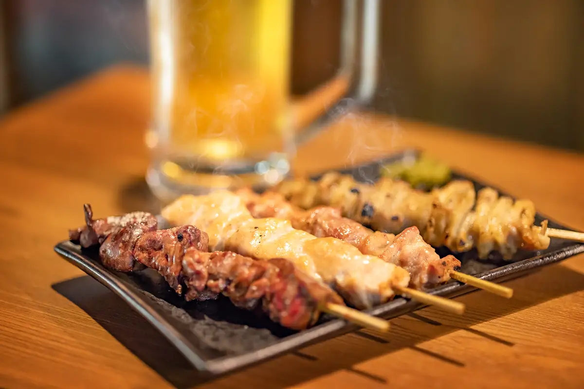 焼鳥には国産鶏肉を使用し、2014年から「国産国消への挑戦」を開始。2016年10月には使用食材を100%国産化しました。
