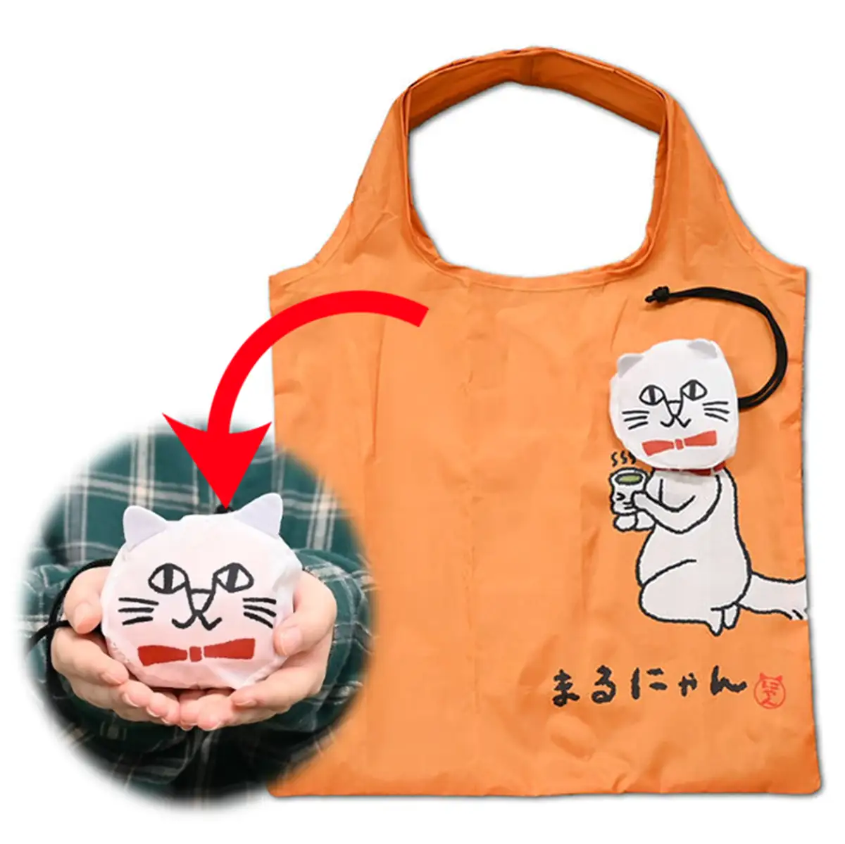○まるにゃんの顔型巾着に収納できるエコバッグ