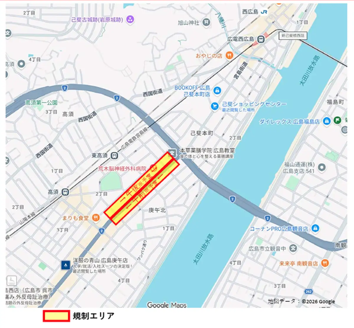 2026年2月21日(土)から2月27日(金)までの間、広島市中心部の各所においてテレビドラマ撮影に伴う大規模な交通規制が行われます。