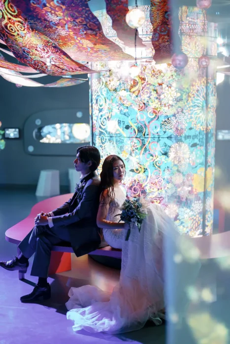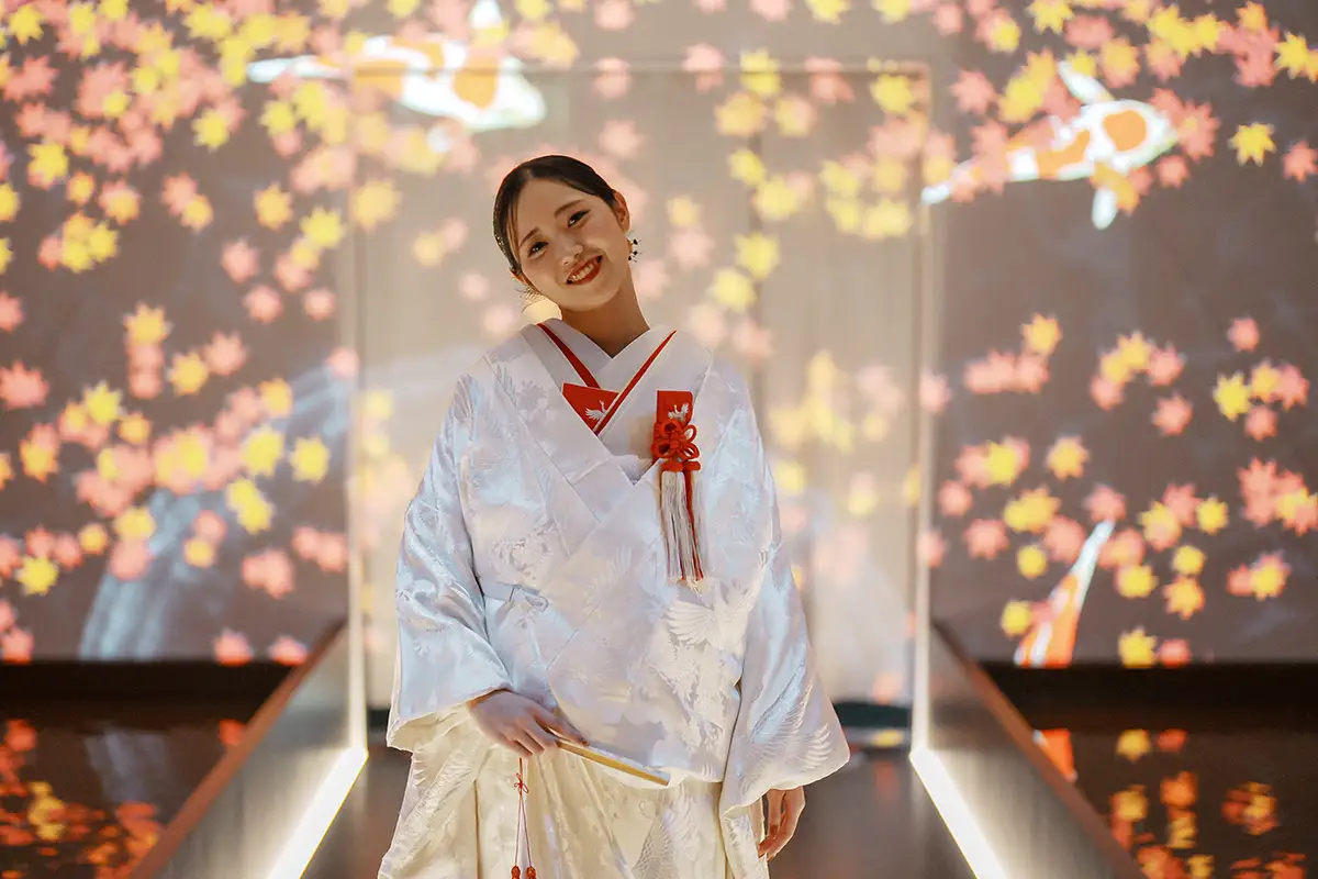 切り絵アートと光が織りなす幻想的な展示「海の花鳥風月」やいのちあるものだけが色を纏う純白の空間「White」など非日常的な世界観の中で、その瞬間にしか残せない特別な一枚を形にすることができます。