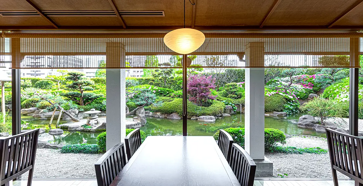 ホテル5階の窓越しには日本庭園が広がり、贅沢で情緒あふれる空間の中、食事が楽しめる日本料理店。落ち着いた店内で、ホテルならではの上質なおもてなしとともに平日限定の特別なランチタイムを満喫できます。
