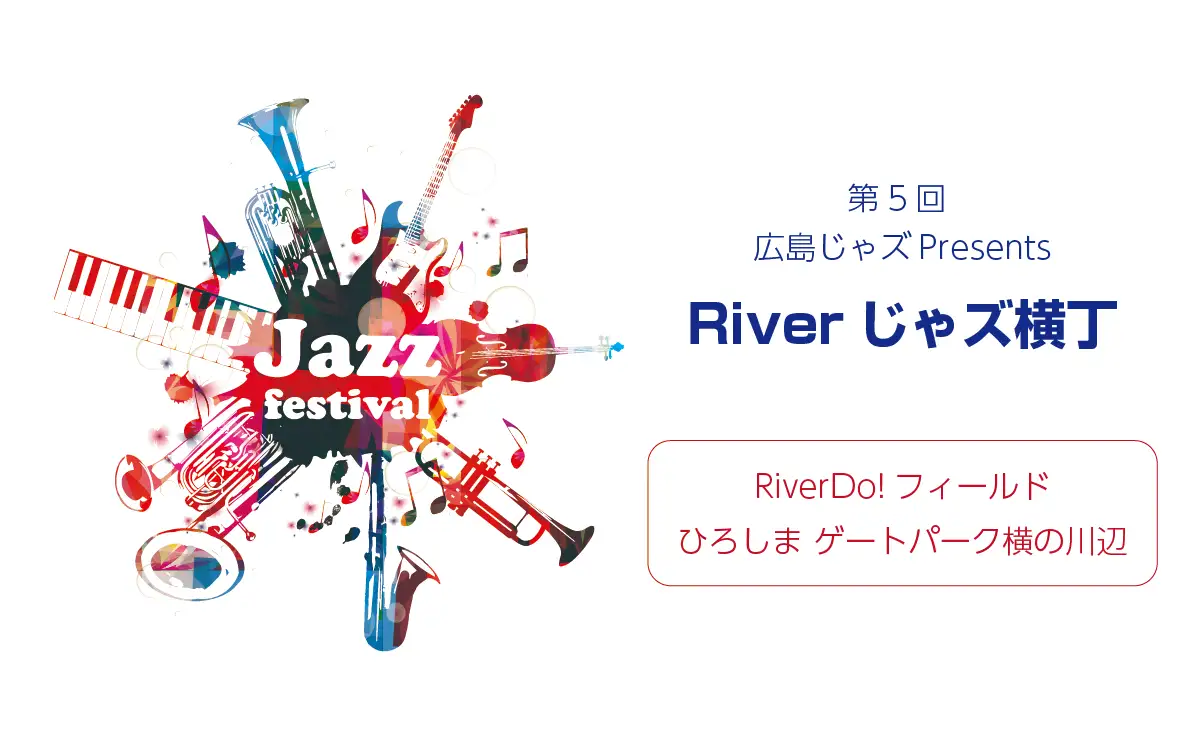 川辺の開放的な空間を舞台に、ジャズを中心としたさまざまな音楽と広島ならではのグルメが融合する体験型イベントで、来場者はライブ演奏を聴きながら飲食を楽しめるのが特徴です。