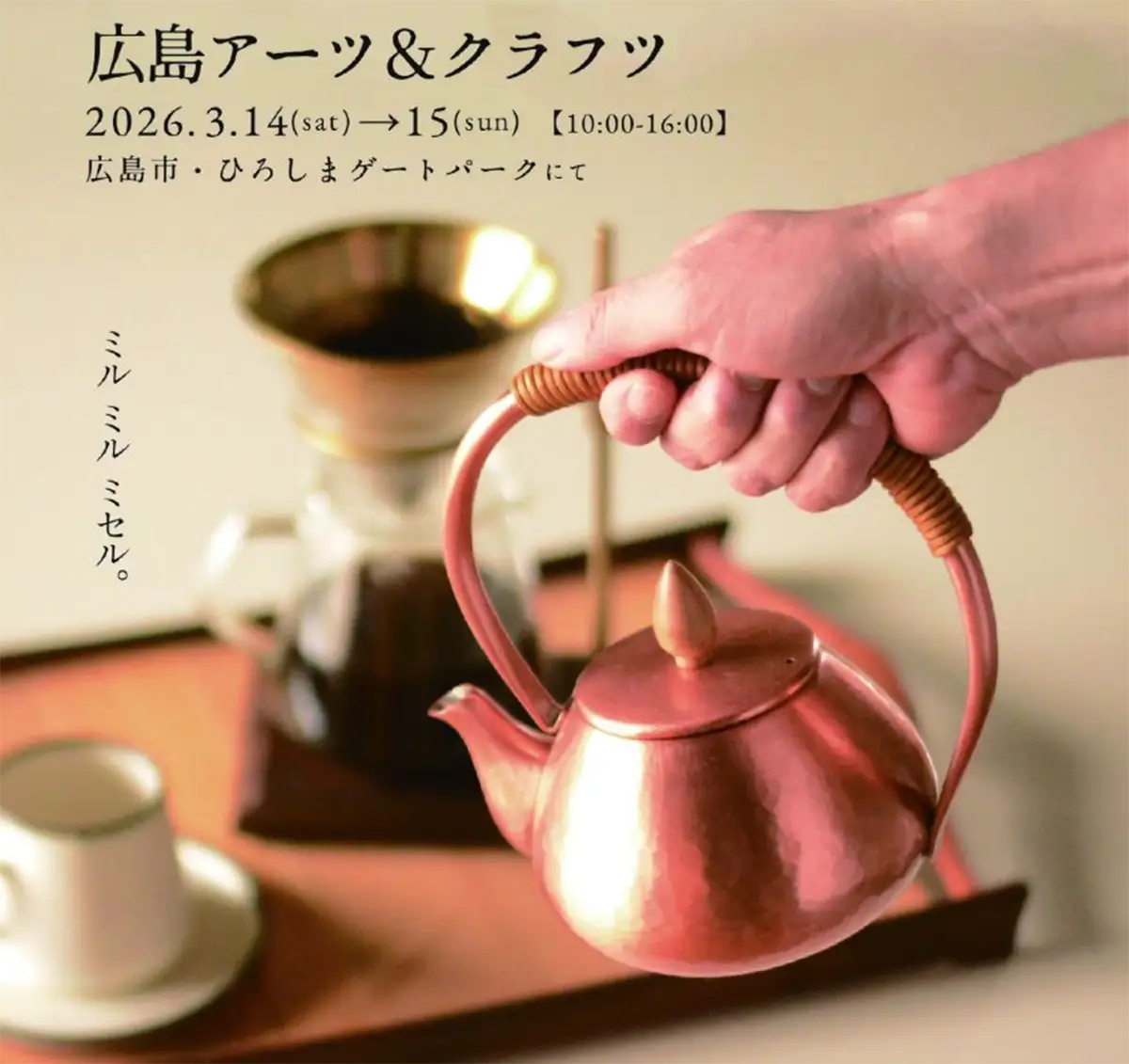 広島市中区のひろしまゲートパークで、2026年3月14日(土)・15日(日)の両日にクラフト作家の作品販売イベント「第2回 広島アーツ&クラフツ」が開催されます。