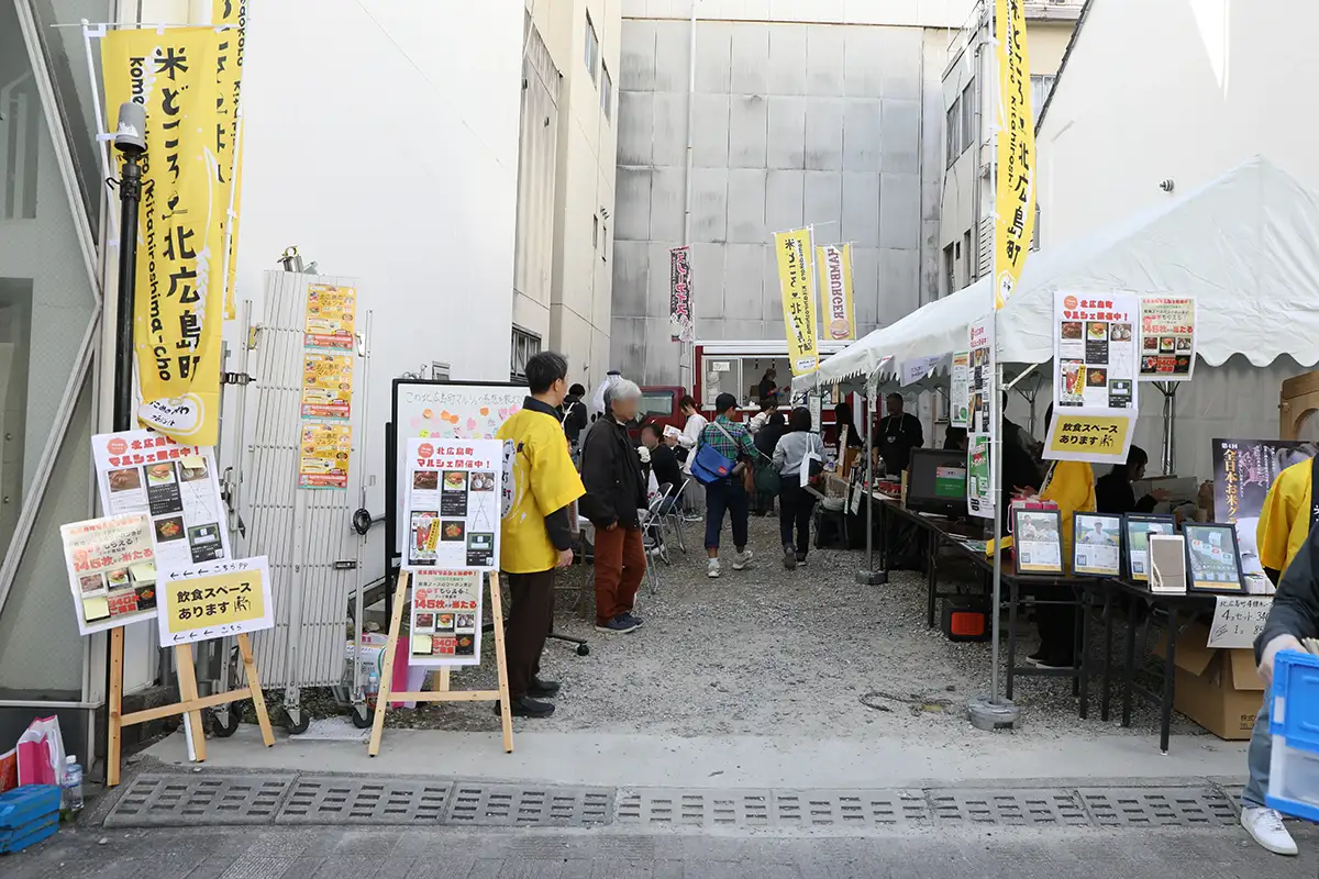 グルメエリアでは、北広島町の新米をはじめ、豚ジャーキー、梅キムチ、牡蠣キムチといった地元色豊かなグルメが試食で振る舞われました。