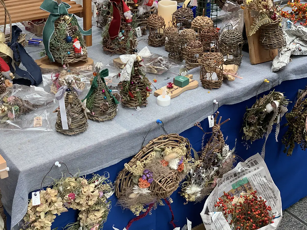 本通りの真ん中に設置されたブースには、手仕事のぬくもりを感じる雑貨や、季節感あふれるクリスマスアイテムなどがずらり。行き交う買い物客や観光客が立ち寄り、思わず手に取って品定めを楽しむ姿が見られました。