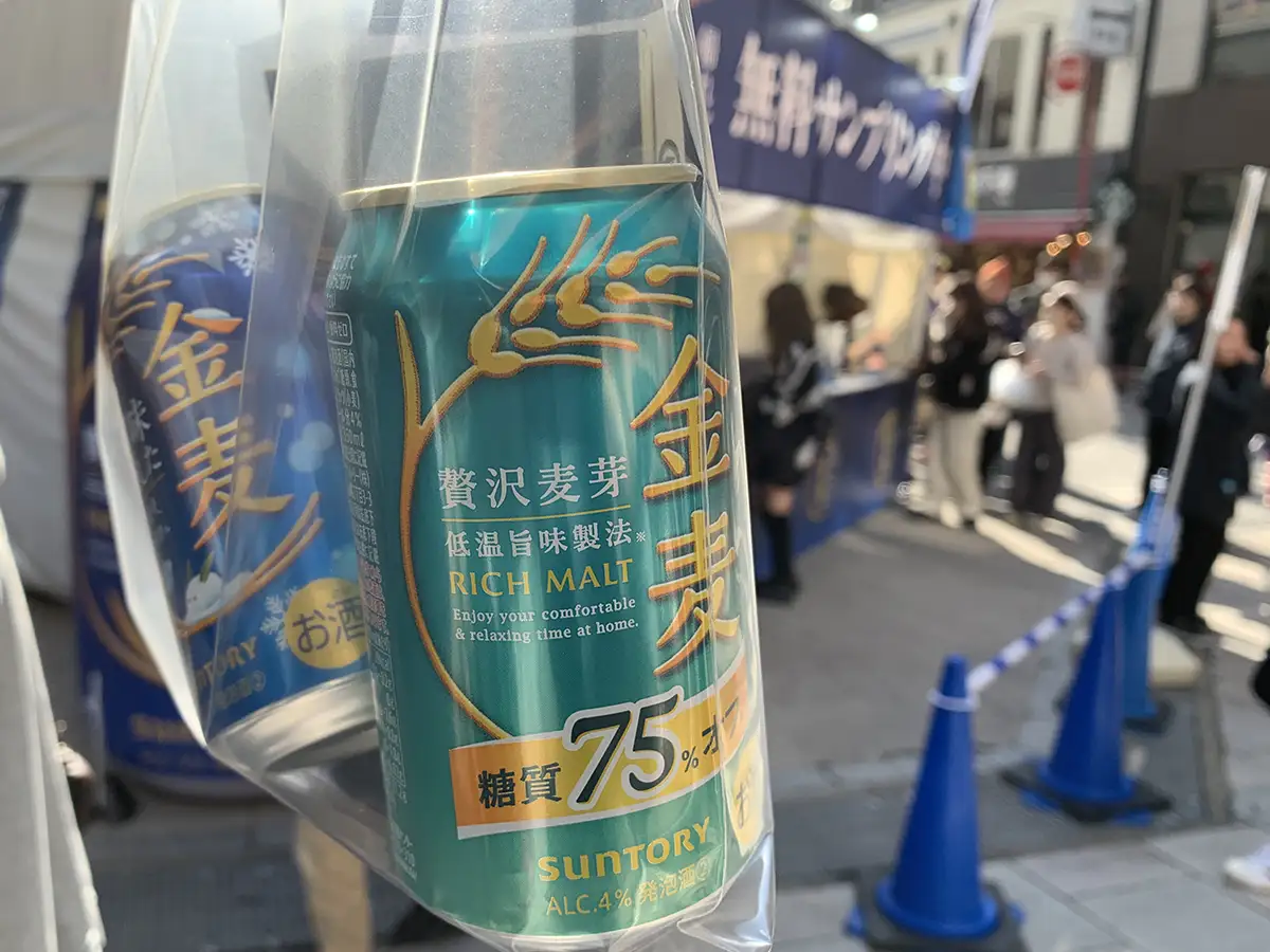 パルコ前にはサントリーの発泡酒「金麦」の無料サンプリングブースが登場。LINE登録で気軽に受け取れる手軽さから、時間帯によっては長い行列が生まれるなど、こちらも人気を集めていました。