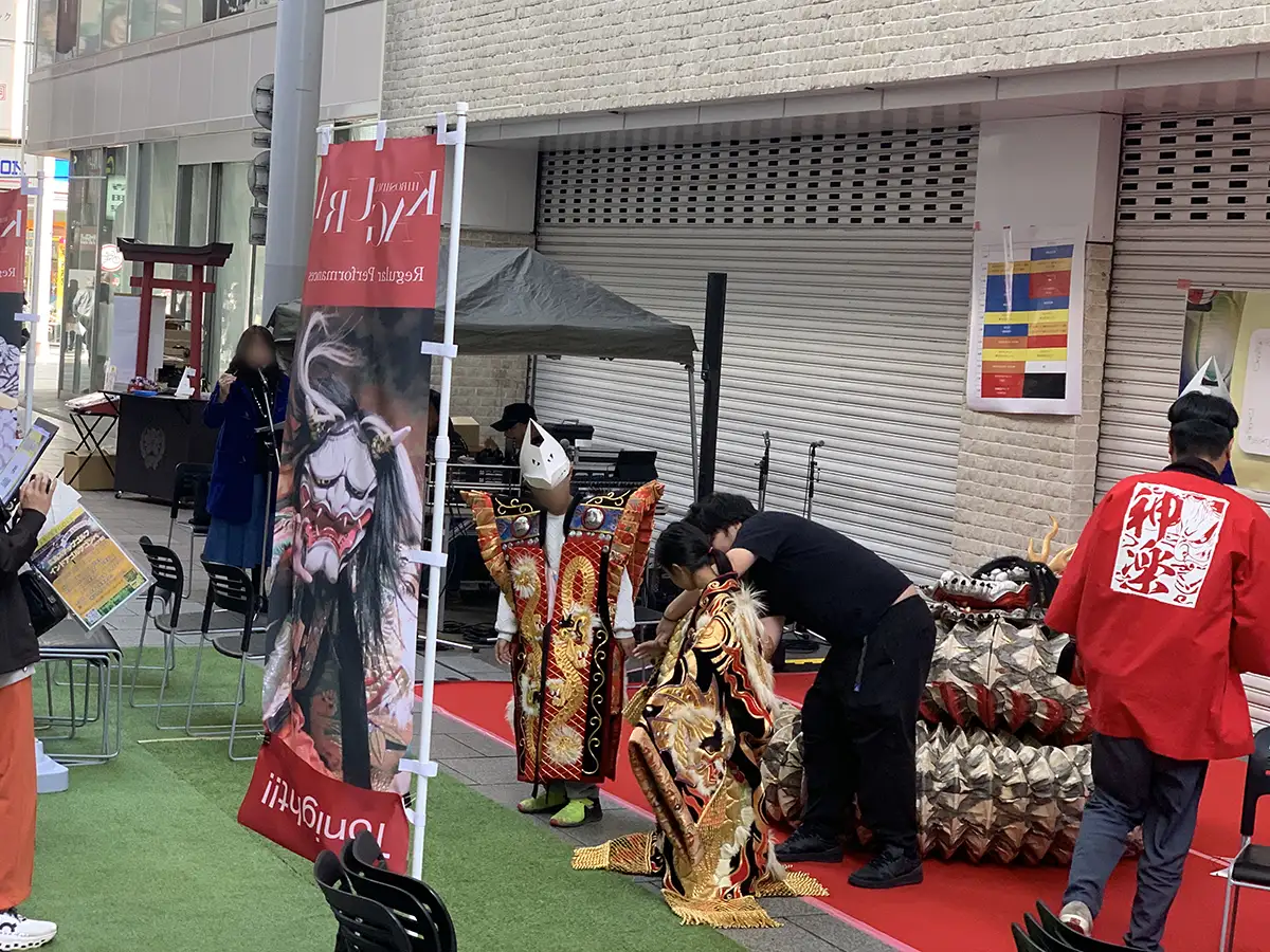 特設ステージでは子ども向けに神楽衣装の試着体験が行われ、多くの家族連れで賑わいました。