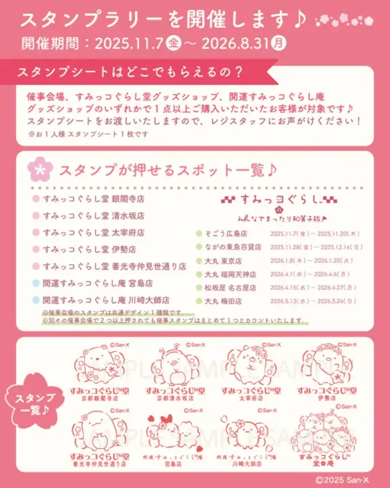 期間中は、全国の「すみっコぐらし堂」および「すみっコぐらし庵」店舗にて、イベントと連動したスタンプラリーも実施が予定されています。