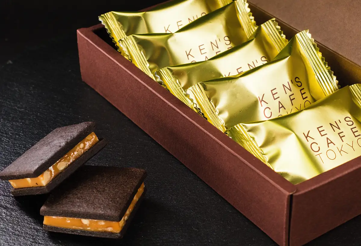 まるで生キャラメルのようにとろける滑らかなキャラメルを、香ばしいカカオクッキーでサンド。キャラメルの中には、食感のアクセントとしてくるみを使用。さらに、カカオクッキーとキャラメルの間には、上質なチョコレート「DOMORI Special T」を贅沢にサンドし、華やかで奥深いチョコレートの風味も楽しめます。