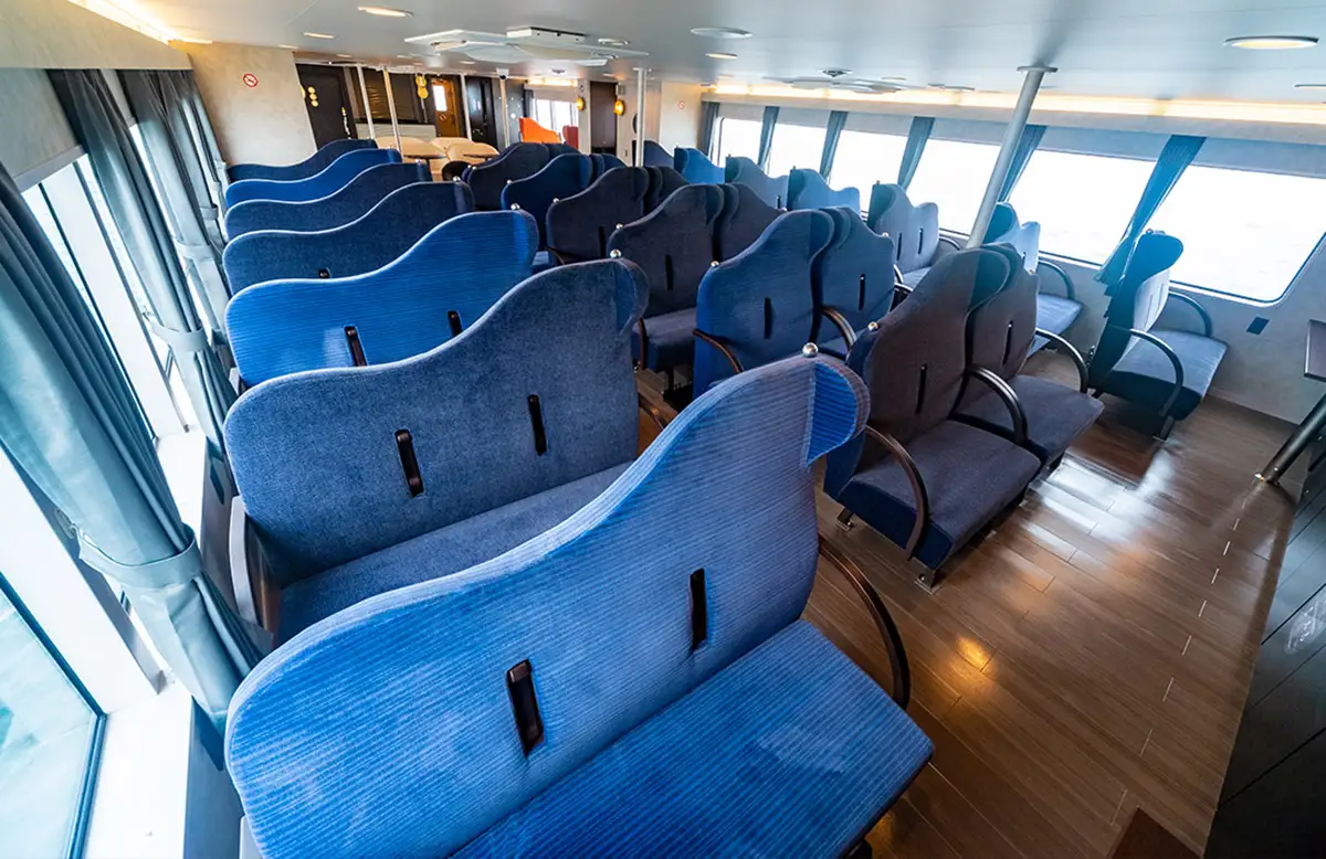 「SEA SPICA」は、島めぐりに特化した設備を備えた観光型高速クルーザー。広島港・グランドプリンスホテル広島前桟橋・呉港のいずれかから出発し、瀬戸内の多島美を海上からゆったりと巡ります。2023年開催の「G7広島サミット」でも使用されたことで話題となったこのクルーザーからは、陸地とは異なるアングルでの絶景が楽しめます。
